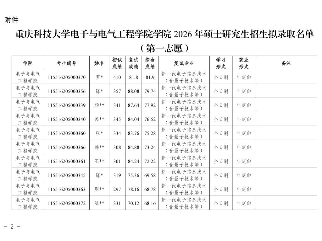 下载文件:重庆科技大学电子与电气工程学院2026年硕士研究生招生拟录取名单公示(第一志愿)