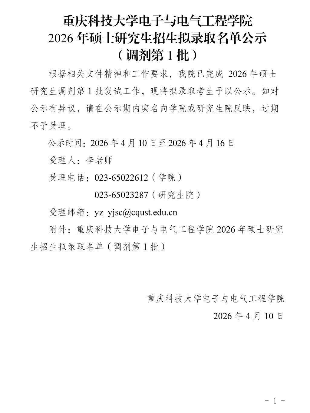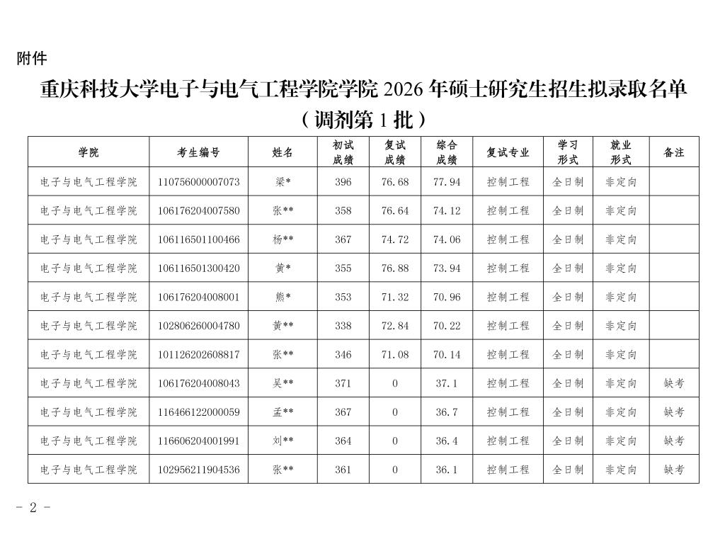下载文件:重庆科技大学电子与电气工程学院2026年硕士研究生招生拟录取名单公示(调剂第1批)