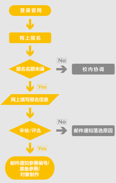 各校选派代表队参加(每个队由二名带队老师和三名学生(其中最多一名研究生)组成,鼓励跨专业、跨院系组队),每校限定中国学生的参赛报名名额为二队之内,但所有选手来自同一院系的最多报一队(此举旨在鼓励跨院系合作,体现不同专业的优势互补),此外每校另有一个留学生参赛队(其中至少二名学生为留学生)名额,即每校最多有三支参赛队的报名名额。