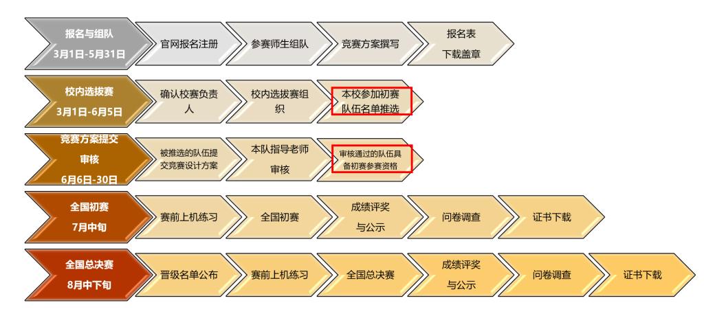 2)提交本校推选的初赛队伍名单:3月1日-6月5日(仅工程设计与应用类赛项)