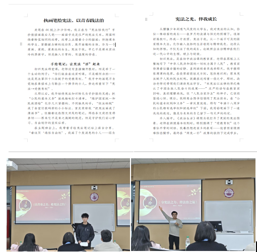 学院开展了法治故事征集与主题演讲比赛,两项活动相辅相成,形成“以思促讲、以讲促思”的良性循环,实现对学生能力素养的“双向赋能”。在故事征集活动中,同学们记录身边的法治故事,在文字中感悟法治精神;在演讲比赛中,选手们结合专业特色与个人感悟,抒发对法治的真诚信仰、展现新时代青年的法治担当,有效提升学生的法治思维和表达能力。