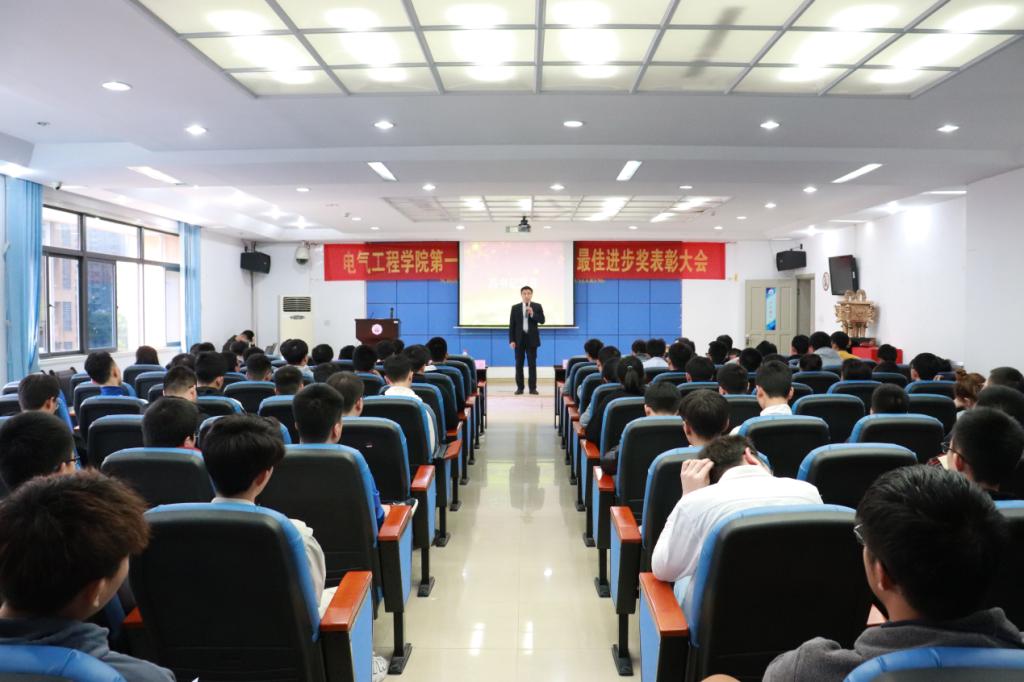 为进一步加强学风建设,帮助同学们掌握良好的学习方法,电气工程学院于4月3日下午在I413-3会议室举行第一届“我要当学霸”最佳进步奖表彰大会。学院党总支副书记冯旭平、系主任代表、教师代表、全体专兼职辅导员以及学院全部学生代表共计160余名参加大会。