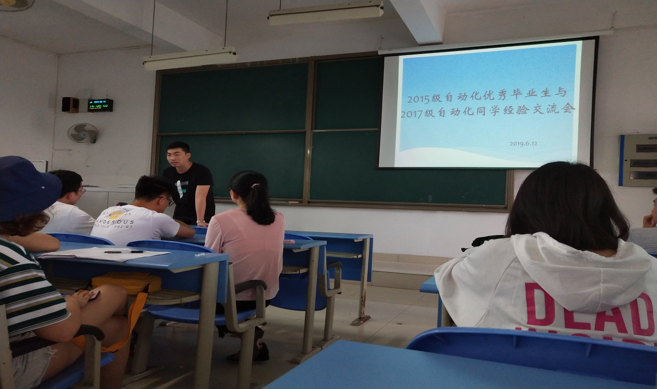 6月16日,自动化系教研室针对自动16、17、18级学生分别举行了毕业生交流会。自动15级毕业生考公代表李玮萱、就业优秀代表邓迎春、考研代表苏鹏围绕自己在奋斗过程中的心得体会和学弟学妹们展开了交流。