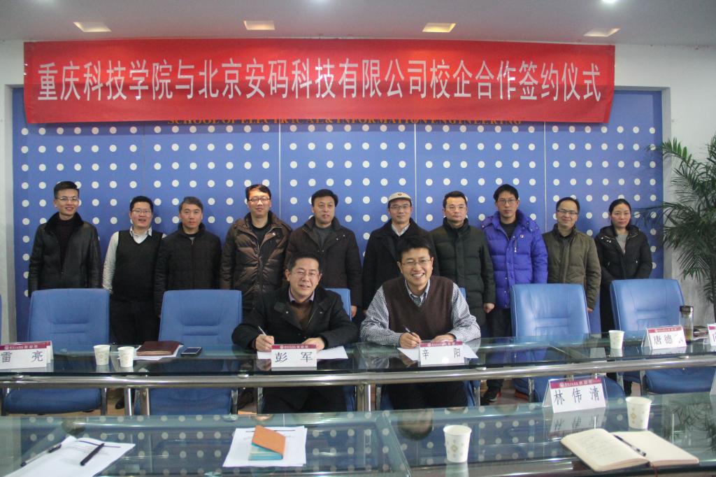 为提升我校人才、科研、服务三位一体的创新能力,促进教育、科技与经济紧密结合,突显地方性、行业性特色,更好地结合高校和企业在人才资源、科学研究和生产实践的优势,进一步提升学校的教学科研水平和企业的核心竞争力。2018年1月12日,北京安码科技有限公司与重庆科技学院电气与信息工程学院本着“真诚合作,讲究实效,互惠互利,共同发展”的原则,经过双方友好协商,共同建设“网络空间安全产学研协同创新基地”,在网络空间安全领域的科学研究、教育教学、人员培训、实际运用等产学研用方面开展全面合作,结成战略合作伙伴。