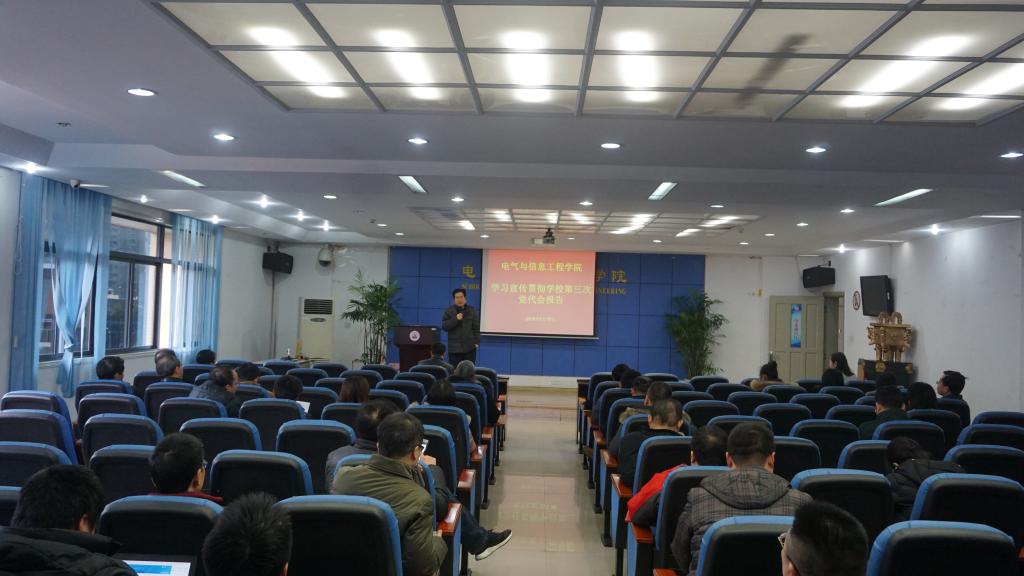 为集中学习并贯彻落实学校第三次党代会报告精神,结合会议报告精神部署和安排学院后期工作,1月10日下午,电气与信息工程学院在I413-3会议室召开了集中学习学校第三次党代会报告精神专题会议。学院全体领导及教职工参加了会议,会议由学院党总支书记崔轩辉主持并主讲。