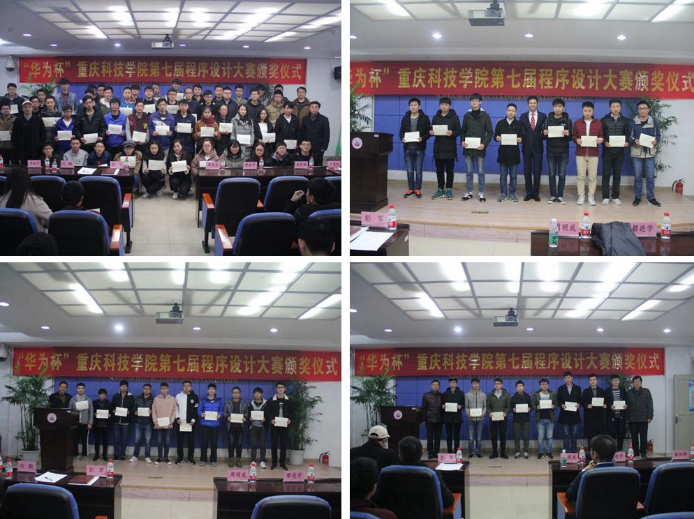 1月3日中午,“华为杯”重庆科技学院第七届程序设计大赛暨重庆科技学院第四届程序设计赛课计划颁奖仪式在逸夫楼413-3会议室举行。华为公共及政府事务副总裁周明成,华为技术有限公司华为平台负责人张金兰,校团委书记都进学,电气与信息工程学院党总支书记崔轩辉、院长彭军、副院长唐德东、副院长向毅、院长助理雷亮及参赛师生代表共150余人参加了会议,会议由电气与信息工程学院党总支副书记冯旭平主持。