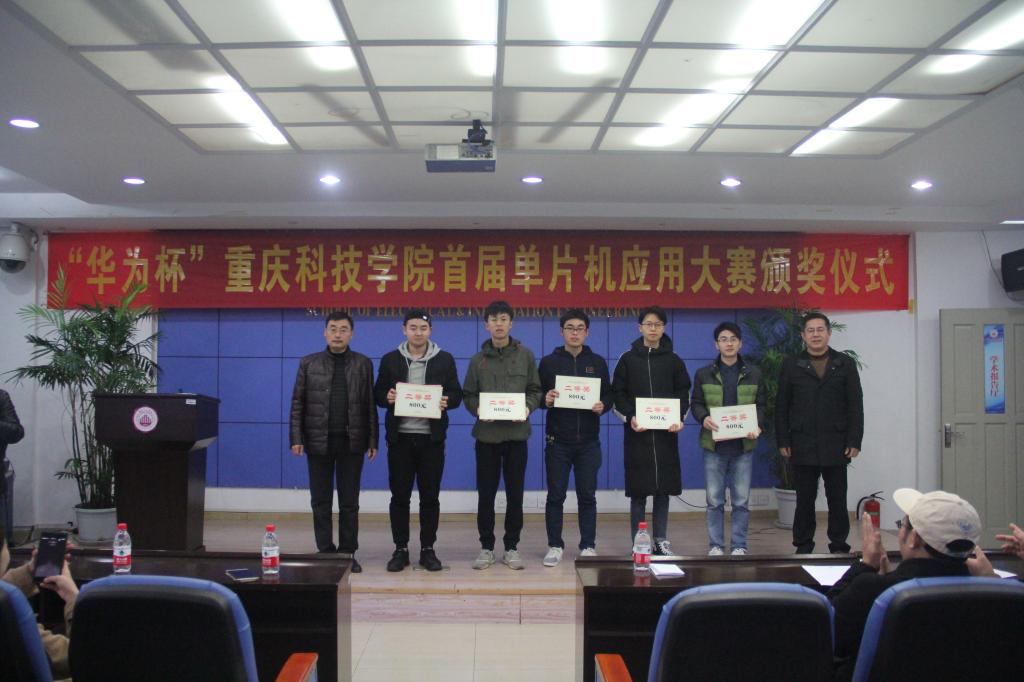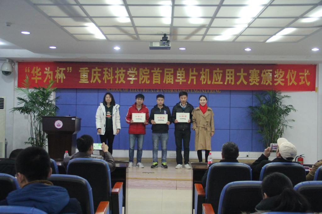1月2日中午,“华为杯”重庆科技学院首届单片机应用大赛颁奖仪式在逸夫楼413-2会议室举行。华为公司大学生创新资助项目经理曲洁,校团委书记都进学,电气与信息工程学院院长彭军、副院长向毅、院长助理雷亮、教务办主任周谋及参赛师生代表共150余人参加了会议。会议由电气与信息工程学院副书记冯旭平主持。