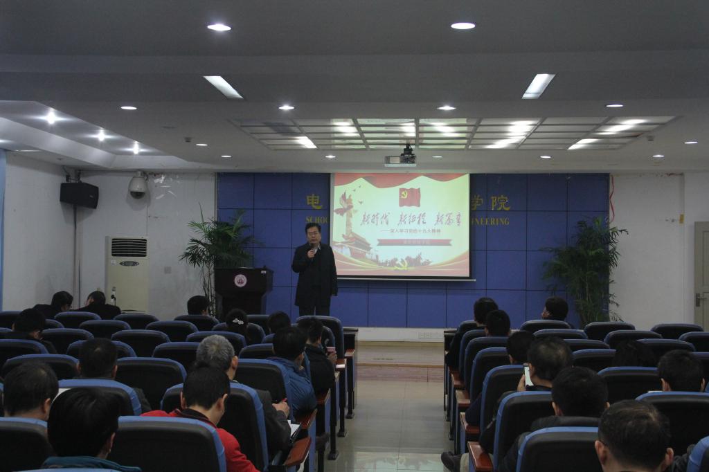 11月22日下午,电气与信息工程学院党总支在逸夫楼I413-3会议室开展了十九大精神专题党课学习。宣讲会由学院党总支书记崔轩辉主持,学院党政领导班子、各党支部书记、全体教职工及党学生员参加了会议。