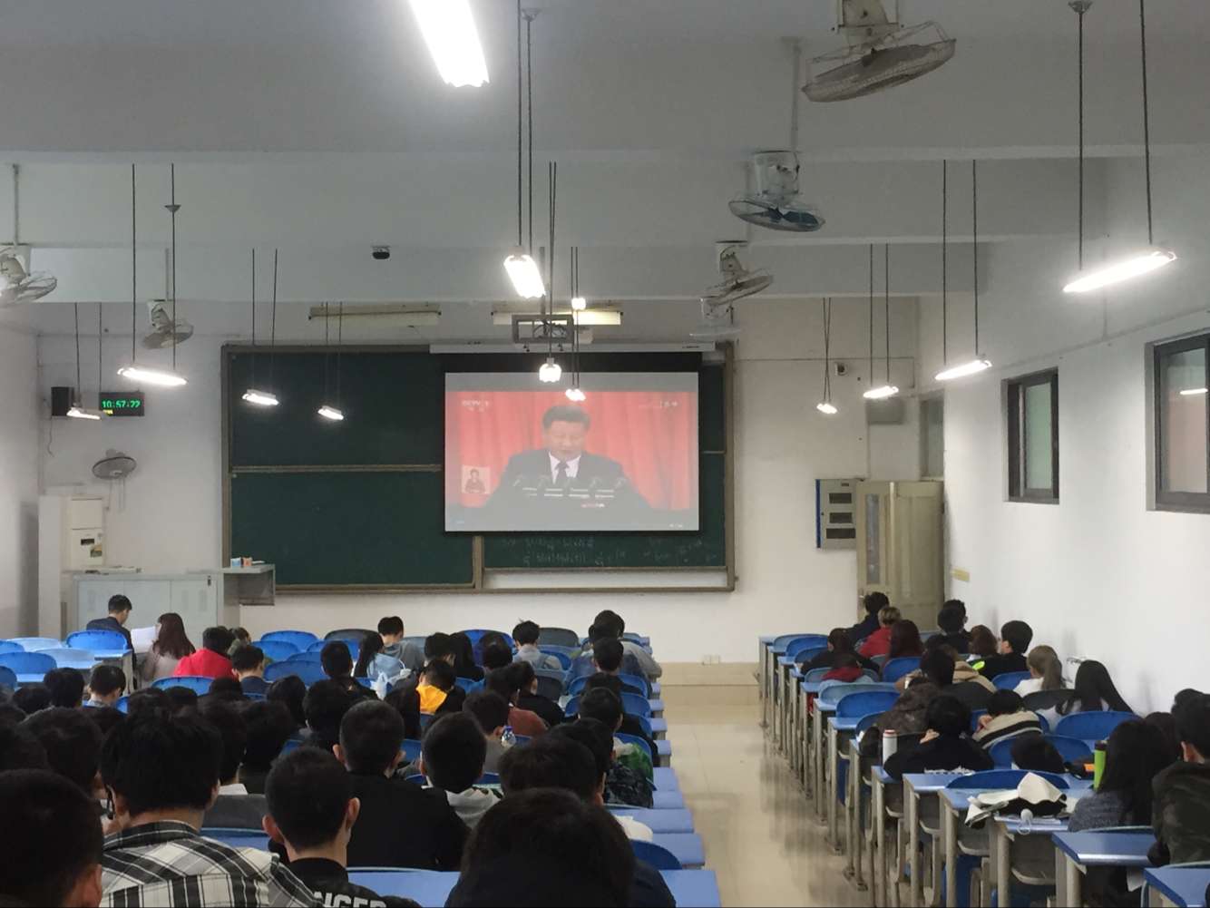 组织学生在教室观看十九大开幕会之二