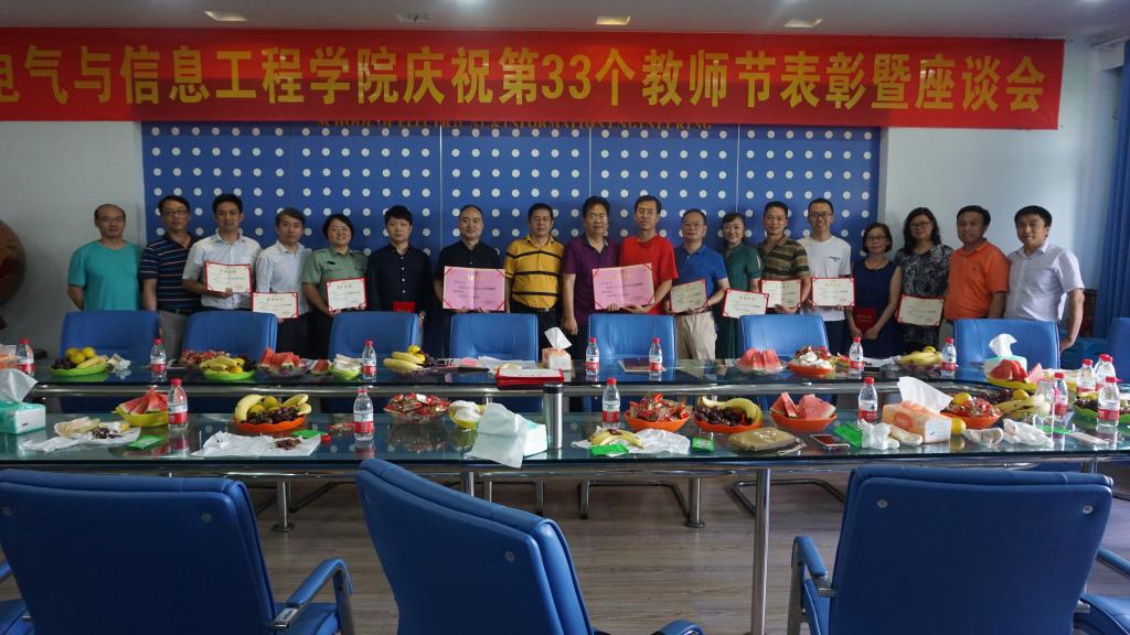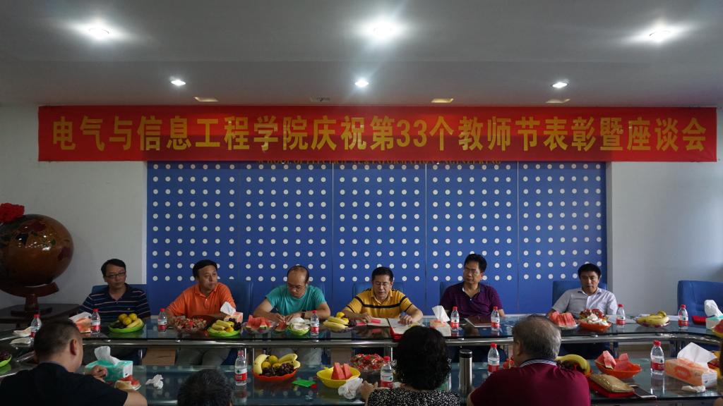 9月8日下午3:45,电气与信息工程学院在逸夫楼I412-1举行庆祝第33个教师节暨表彰座谈会。参加会议的有学院党政领导、组织员、院长助理、教学督导、各系(中心)主任、各办公室主任、受表彰的先进集体负责人、受表彰的先进个人、青年教师代表、离退休教师代表20余人参加了会议,会议由学院党总支书记崔轩辉。