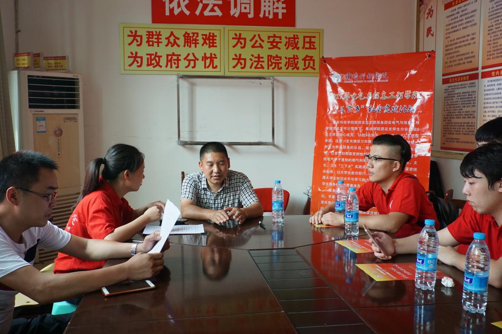 经过3个小时旅程,服务团来到澄溪镇政府。当地活动接洽负责人高凤琼主热情接待了服务团,并为大家介绍了澄溪镇目前经济上存在贫困的情况。她希望志愿服务团队能够给当地贫困居民带去温暖。杨春艳老师宣传了本次“三下乡”活动,提出了本次志愿服务活动的整体方案,得到了大家的大力支持与配合。