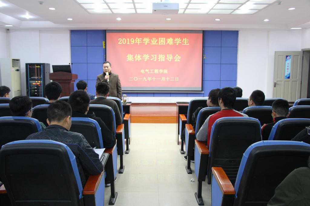 在推进“不忘初心、牢记使命”主题教育中,电气工程学院党政班子聚焦“立德树人担使命,提高‘三率’促学风”调研主题,结合调研检视中反映出来的学生学籍警示率相对偏高问题,积极开展相关问题整改工作。为切实帮助后进生攻克学习难关,顺利完成学业,11月13日下午,电气工程学院在逸夫楼I413-3召开2019年学业困难学生集体学习指导会,党政班子全体成员及受到学籍警示的学生参加了会议。会议由党总支书记郑远平主持。