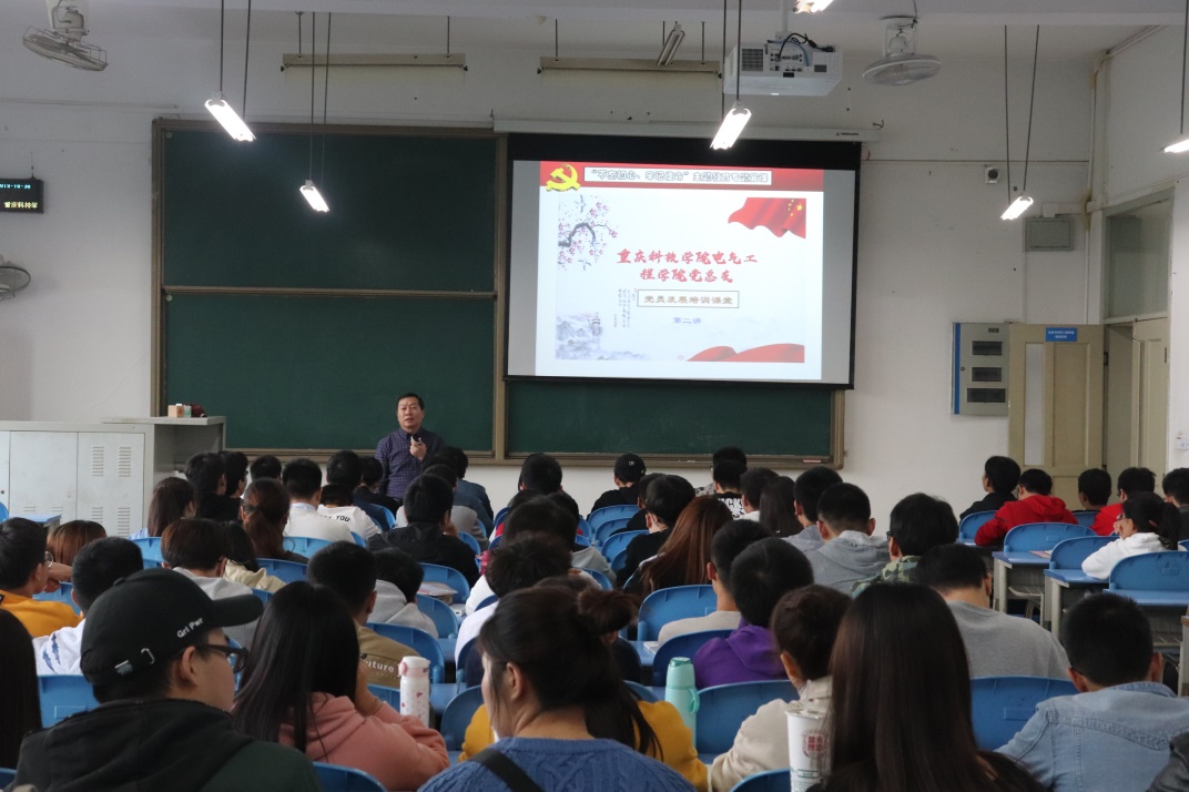 为扎实推进“不忘初心、牢记使命”主题教育,围绕立德树人根本任务,切实做好大学生党员发展工作,确保发展党员质量,突出爱国主义教育,弘扬爱国主义精神,10月30日下午,电气工程学院党总支开展了“党员发展培训课堂”第二讲。电气工程学院党总支书记郑远平为大家上了一堂题为“高扬爱国主义民族魂,担当民族复兴大使命”的党课,学院全体学生党员、2019年下半年拟发展党员、第三十一期入党积极分子,大一新生代表共计200余名学生参加了党课学习。