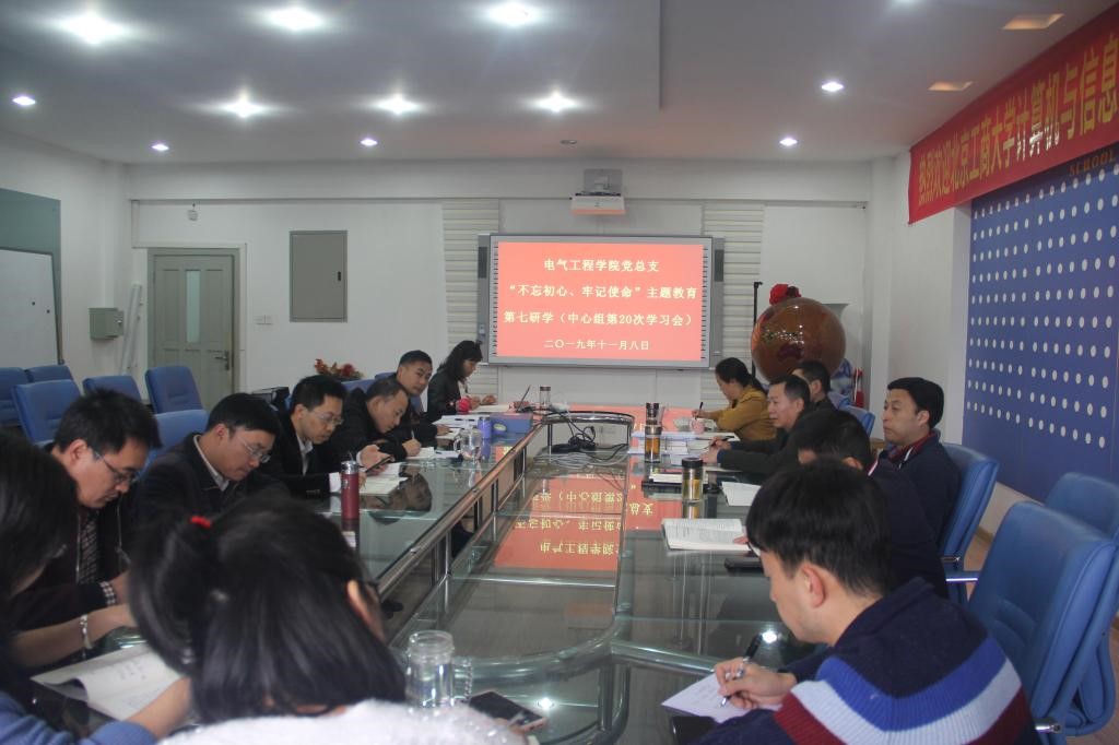 11月8日上午,电气工程学院党总支在逸夫楼小会议室I412-1召开“不忘初心、牢记使命”主题教育第七次集体研学暨中心组第20次学习会。学院总支委员、党政领导、院长助理、党支部书记及科级以上干部参加了会议,会议由党总支书记郑远平主持。