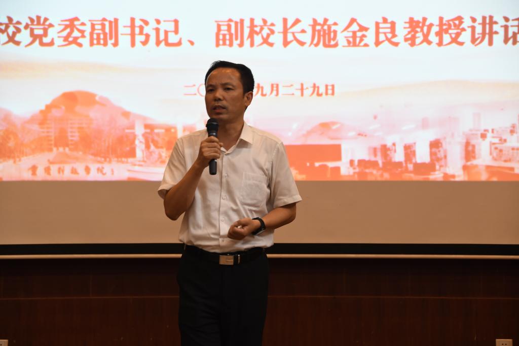 施金良结合自己的切身体会,向大家分享了自己的求学和工作经历,讲述了自己从事创新创业的心路历程。他勉励新时代的大学生要学会思考,珍惜大学四年的时间,找准一个切入点深入学习,要敢做、敢拼,通过所学知识为自己、为社会创造价值,实现个人价值和社会价值。