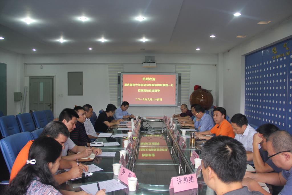 9月24日,重庆邮电大学自动化学院胡向东副院长一行来校交流。交流会在逸夫楼I412-1会议室举行,电气工程学院院长唐德东、副院长丁又青、各系(中心)主任、专业负责人参加了交流会,会议由唐德东主持。