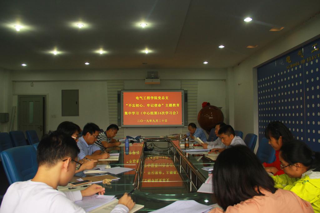 9月20日上午,电气工程学院党总支在逸夫楼I412-2会议室召开“不忘初心、牢记使命”主题教育动员部署暨第一次集体研学会(党总支中心组第14次学习会)。学院总支委员、党政领导、院长助理、支部书记及科级干部参加了会议,会议由党总支书记郑远平主持。