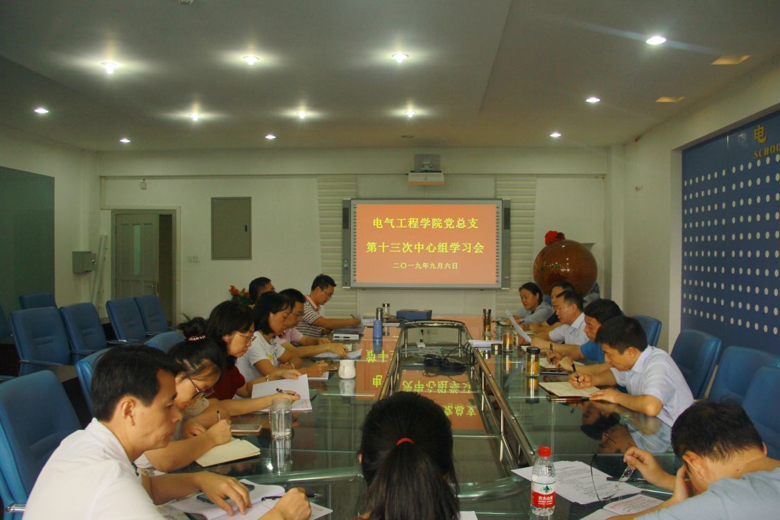 9月6日上午,电气工程学院党总支在逸夫楼I412-2会议室召开第十三次中心组学习会。学院党政领导、总支委员、科级干部、党支部书记及院长助理参加了会议。会议由党总支书记郑远平主持。