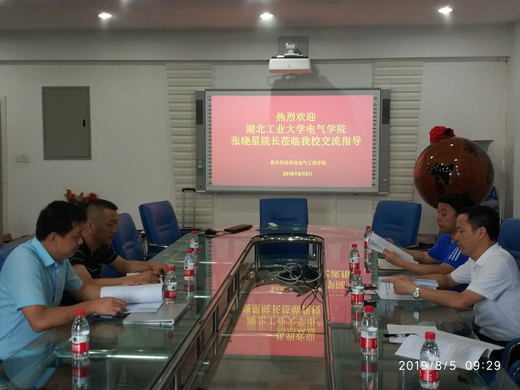 唐德东对张晓星院长一行来访表示热烈欢迎,并简要介绍了学院发展历史、科研平台、工程认证、特色专业等有关情况。张晓星介绍了湖北工业大学电气与电子工程学院的学科建设、科研情况、教师队伍等,并分享了工程认证、国家一流学科申报的相关情况。