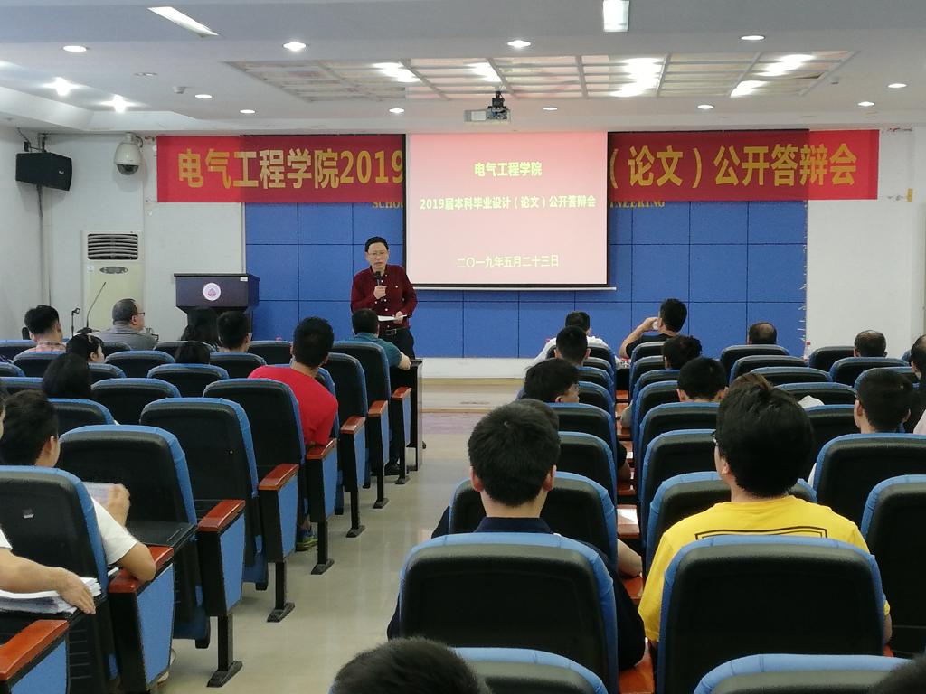 5月23日下午,电气工程学院2019届本科毕业设计(论文)公开答辩在逸夫科技大楼I413-3举行,从3个本科专业毕业生中遴选出来的9位同学参加了公开答辩,近100名同学到现场进行了观摩。公开答辩由副院长丁又青主持。