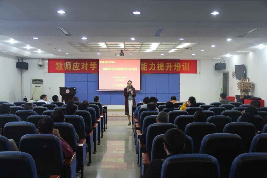教师识别与应对学生心理危机能力提升培训讲座在电气工程学院I413-3会议室开讲。讲座由国家二级心理咨询师杨剑霞主讲, 5月9日和5月16日分两期进行,全校关心大学生心理健康及心理危机干预的教师及重庆师范大学代表共180余人到场聆听了讲座。
