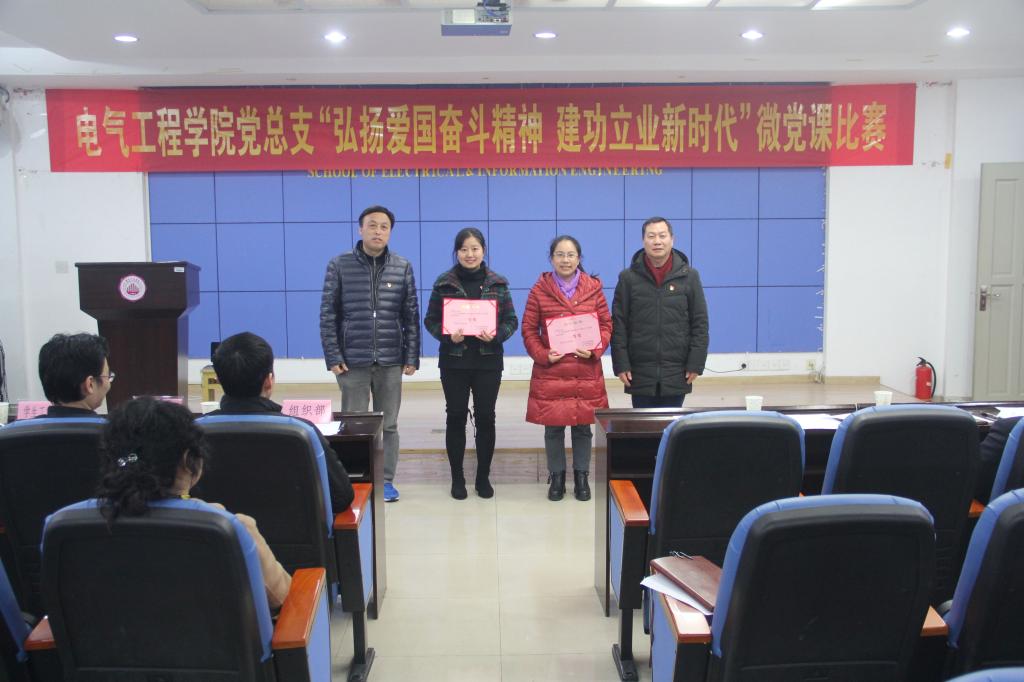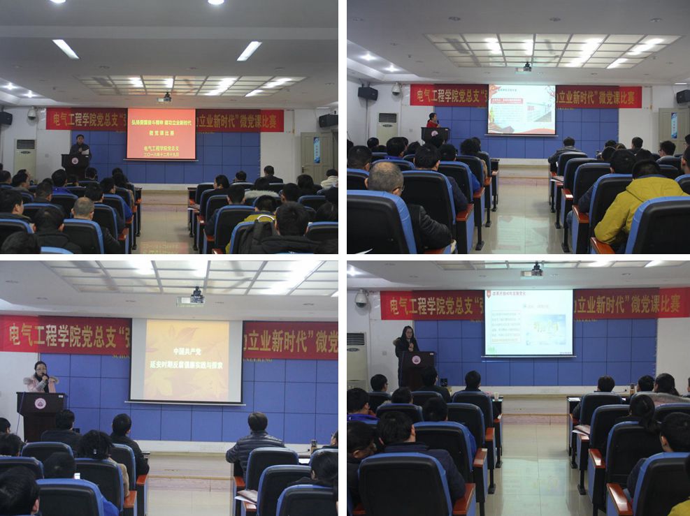 【供稿/电气工程学院】为深刻领会和深入贯彻习近平总书记对弘扬爱国奋斗精神作出的一系列重要指示,夯实基层党建工作,提升党支部书记开展党课教育的能力,切实增强基层党课的实效性和针对性,电气工程学院党总支于12月19日中午在学院学术报告厅组织开展了“弘扬爱国奋斗精神、建功立业新时代”主题微党课比赛活动。学院党总支下设的8个党支部书记和1名教师党员代表参加了讲课比赛。学校组织部、学生工作部、教务处等职能部门负责人以及学院党总支委员、党政班子成员、全体师生党员共120余人莅临比赛现场观摩学习。