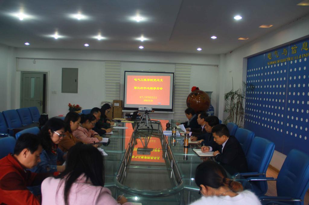 【供稿/电气工程学院 李小芸】10月18日上午,电气工程学院党总支在逸夫楼I412-1召开了第三次中心组学习会。学院总支委员、组织员、支部书记及综合办主任参加了会议,会议由党总支书记郑远平主持。