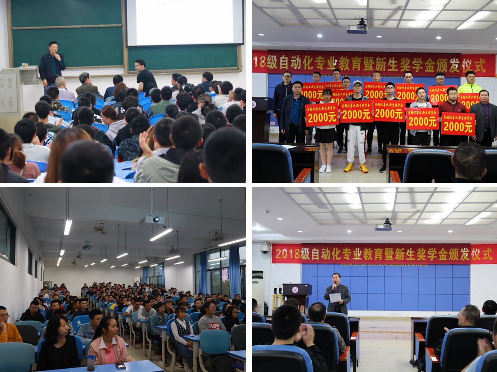学院党总支书记郑远平、副院长唐德东为学院17名新生颁发了“自动化专业2018级新生奖学金”和“测控专业2018级新生奖学金”,同时鼓励新生们奋发图强、再接再厉。专业教师们带领新生们参观了学院实验室,让新生们得以近距离接触实验设备,加深对专业知识的感知。