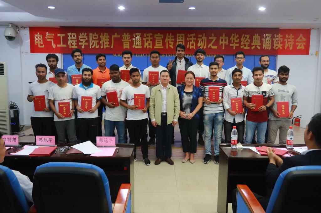 【供稿/电气工程学院 孙惠惠】9月14日晚,电气工程学院在逸夫楼i413-3开展了推广普通话宣传周活动之中华经典诵读诗会。电气工程学院党政领导,学院研究生、留学生、本科生及维他英语协会和职场精英社的同学们参加了活动。