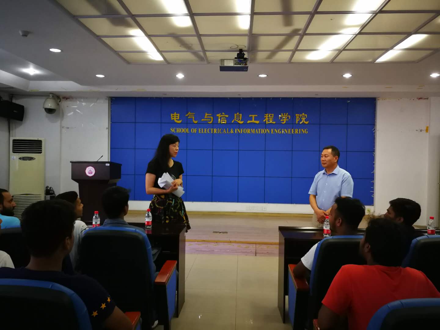 【供稿/电气工程学院】9月5日下午,电气工程学院在学院I413会议室组织了预选拔优秀国际学生本科生攻读硕士学位项目宣讲会。外事处副处长董倩、电气工程学院党总支书记郑远平、副院长唐德东以及学院全体国际学生共40余人参加了宣讲会。会议由组织员邵明翔主持。